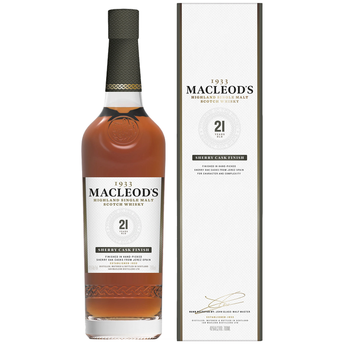 This 21-Year-Old single malt opens with gentle, fruit‑led aromas of lemon and sultana, accented by soft floral notes, vanilla, and a touch of clove. On the palate, its delicate body gradually builds in richness and weight, revealing layers of bright fruit tempered by gentle spice and a fresh lift of lime. The finish unfolds beautifully, lingering with dried fruits and orange zest. Each sip reveals new dimensions of vanilla sweetness, vibrant citrus, and warming clove, delivering a sumptuous, multi‑layered whisky that is both luxurious and memorably refined.1933 Macleods