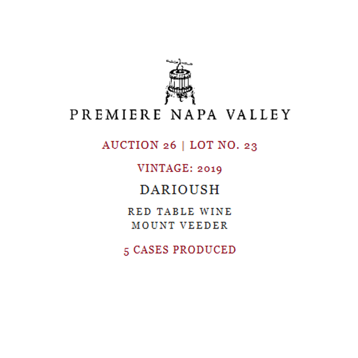 This exceptional red blend highlights the high-elevation, Mount Veeder site that is the cornerstone of Darioush Signature and Darius II wines. The marine-influenced, rocky slopes of Sage Vineyard are responsible for cultivating wines with inherent complexity, power and finesse. Each block of Cabernet Franc, Cabernet Sauvignon and Merlot selected for your Premiere Napa Valley blend expresses the purity of this site and the variety in equal measure. Elevating this harmonious blending, the remarkable 2019 vintage in Napa Valley—with its moderate weather and extended hang time—enhanced the wine’s most desirable traits, imparting exceptional vibrancy of fruit, freshness, and balance. This is an ageworthy offering, poised to reward the patient collector.Premier Napa Valley