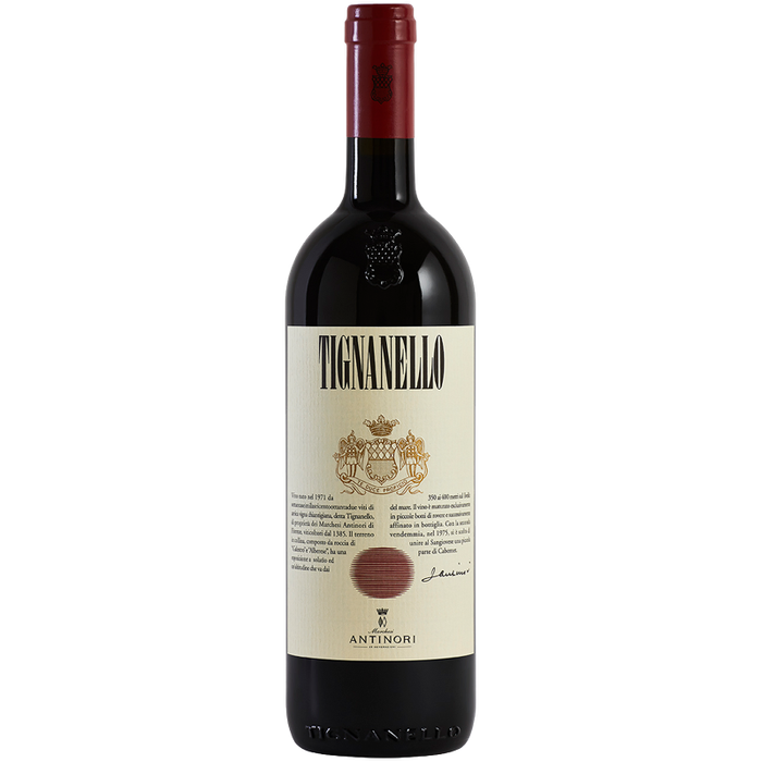 Tignanello 2023 is an intense ruby red color. The nose opens with intriguing notes of ripe cherries, pomegranates and oranges that lead to delicate hints of hibiscus and violets. The generous bouquet follows over to hints of sweet spices of cocoa and pencil lead and closes with delicate impressions of white pepper and cranberries. Entry on the palate is precise, pure and reveals a juicy, mouth-filling mid-palate with silky supple tannins. The long, savory finish delivers distinct notes of blood oranges and roasted hazelnuts.Marchesi Antinori