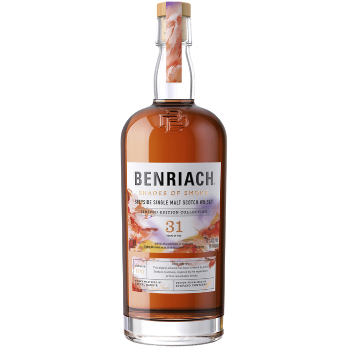 Burnished copper in the glass, this whisky opens with swirling notes of powdery charcoal and juniper smoke, drifting over a vibrant core of lemon ginger and lush peach. Delicate floral accents of wildflower honey and hibiscus lend an airy, ethereal complexity to the smoke. The palate unfolds in harmonious layers of smoked forest honey and charred mandarin, carrying through notes of chocolate and spiced orange caramel. A sophisticated whisper of Speyside smoke and refined yuzu closes the experience with elegance and precision.BenRiach