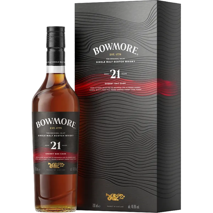 Deep gold‑amber and glowing in the glass, this whisky opens with aromas of tobacco leaves, heather, iodine, warming ginger, tanned leather, rich toffee, and beeswax. The palate follows with sweet toffee, vanilla, rich treacle, oranges, sweet cinnamon, nutmeg, and barbecued meat notes, complemented by red berries, stewed rhubarb, and a faint thread of salty smokiness. The finish is rounded and gently woody, with soft sweet smoke lingering on the tongue as a lasting memory.Bowmore