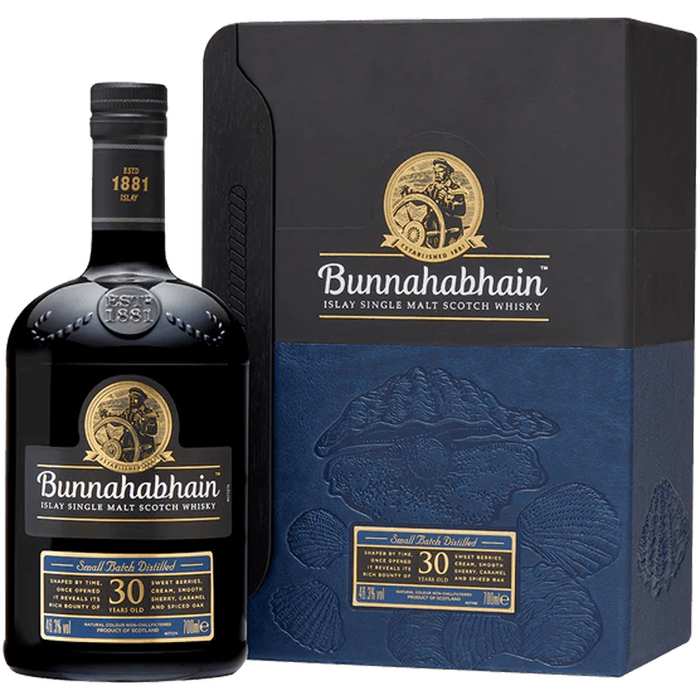 This exceptional 30-Year Bunnahabhain opens with inviting aromas of butterscotch, beeswax, and sweet sherry. The palate is rich and layered, where strawberries and cream give way to honeyed cereals and decadent toffee. A graceful finish lingers with stewed berries and ginger, unfolding into spiced oak and salted caramel for a truly luxurious experience.Bunnahabhain