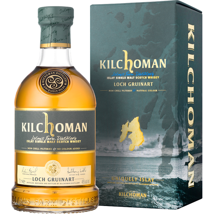 This single malt opens with soft cooked fruits and a bold peaty aroma. The palate delivers layers of soft fruits and vanilla, accented by rich fruit and butterscotch from European and American oak casks, balanced with citrus sweetness and Kilchoman’s signature peat smoke. Loch Gruinart combines 4-, 5-, and 6-year-old Bourbon and Sherry cask matured whiskies, allowing bright citrus, sea salt, and smoky character to shine through. The finish is long, lingering, and uniquely IslayKilchoman